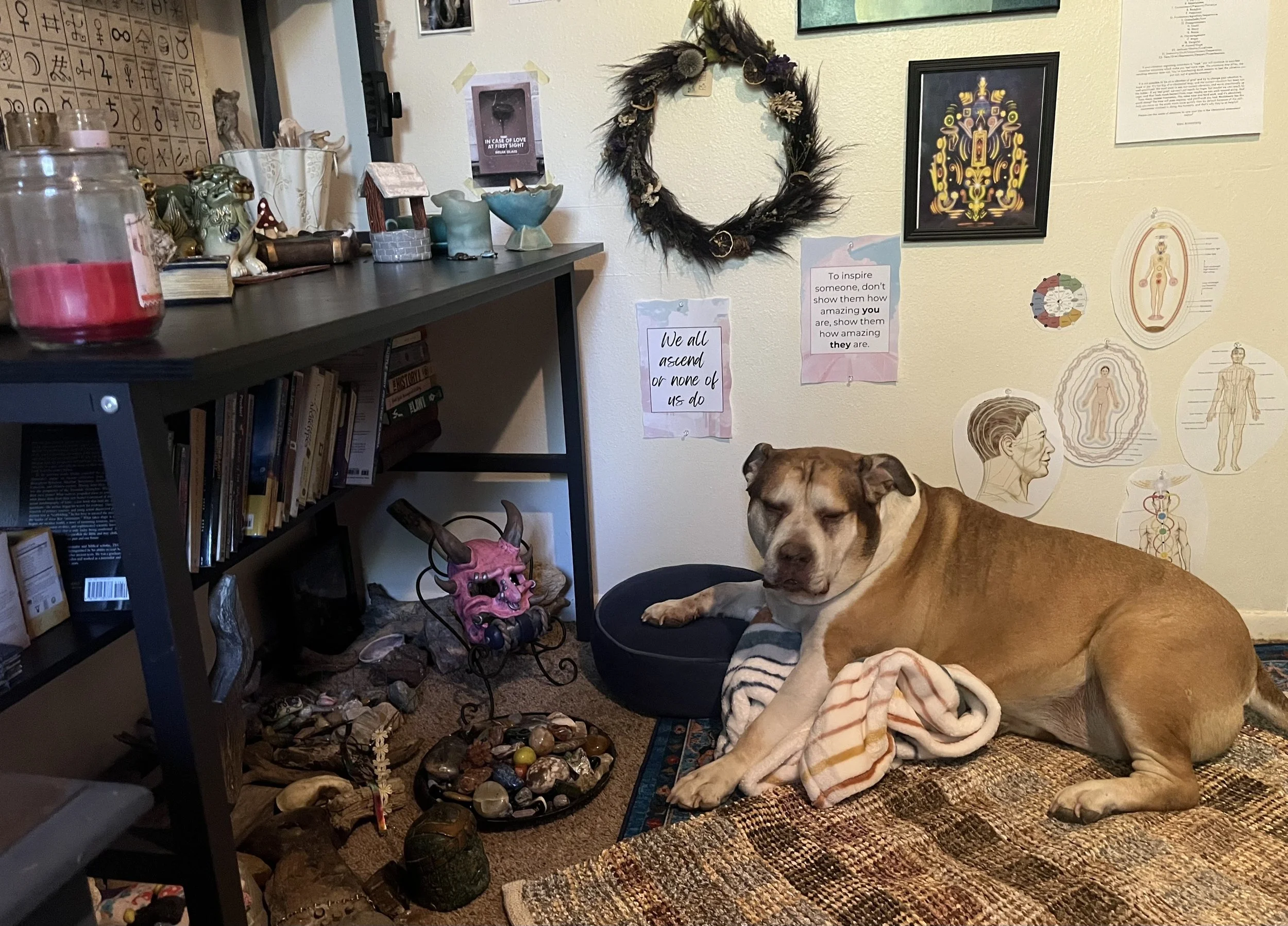 I’m the mother of a nineteen-year-old sculptor who is the dang coolest and the light of my life, and one giant fur baby named Buffy who is likely to say hi during video sessions! These kiddos are the most important part of my life, and the inspiration for everything I do. I want a better world for my babies, my clients, myself, and the Universe.