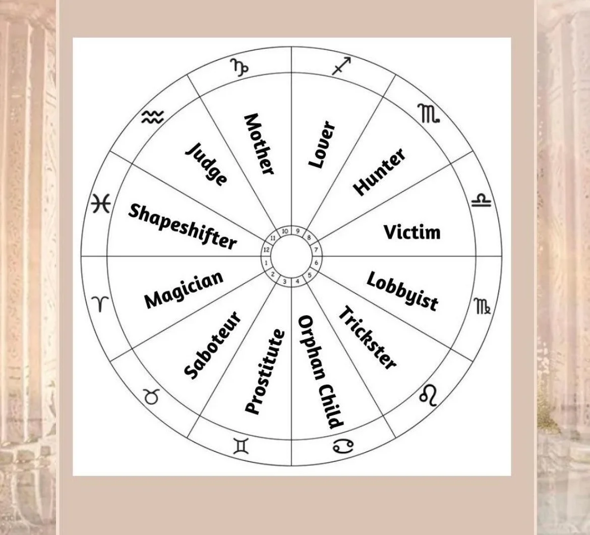 I used to do a reading which broke down which 12 lessons someone is going through at a time archetypally. I did this reading for a while, long before I understood that the shifts were attacking all of these at once. Each of our charts would have different archetypes, depending on our personal lessons, but it looks something like this.